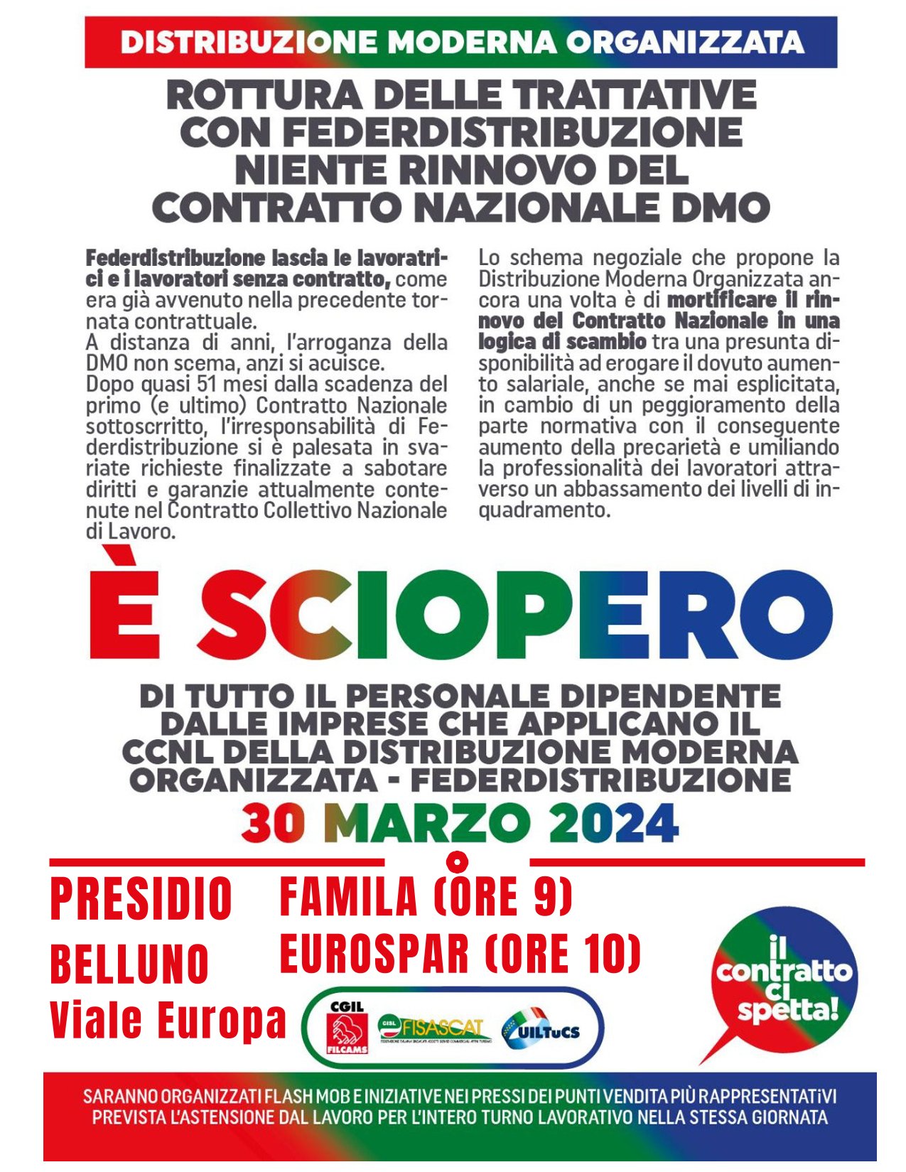 SCIOPERO DMO FEDERDISTRIBUZIONE - 30/03/2024 - PRESIDI BELLUNO