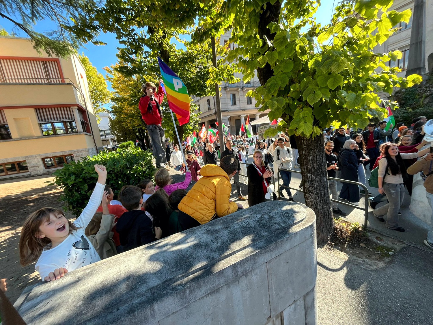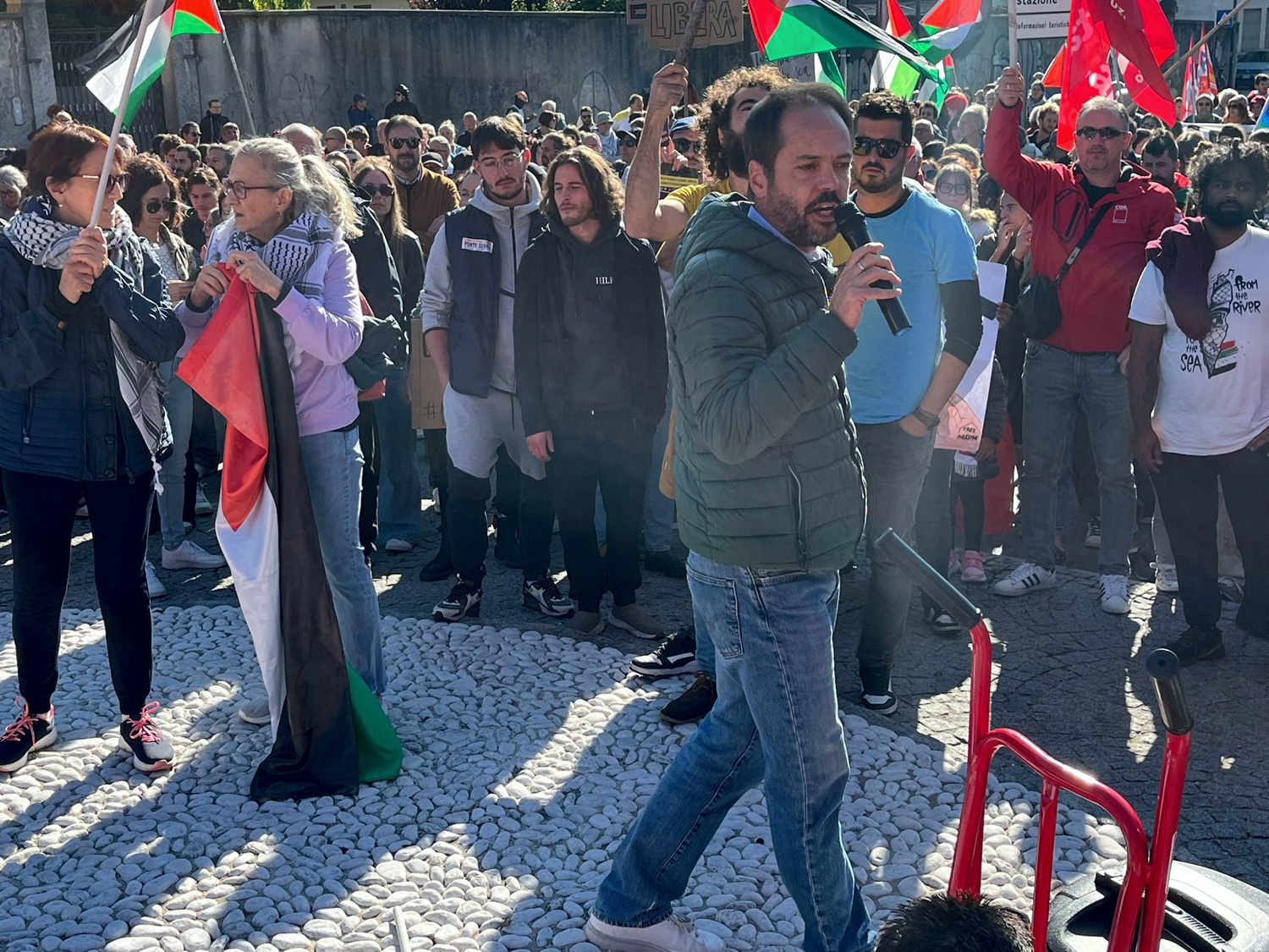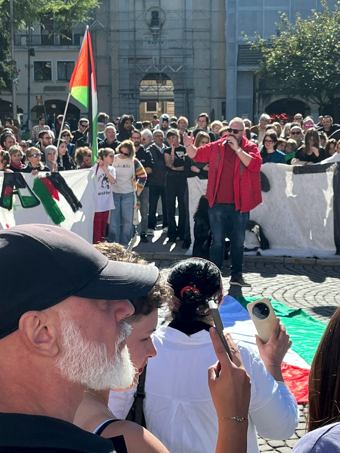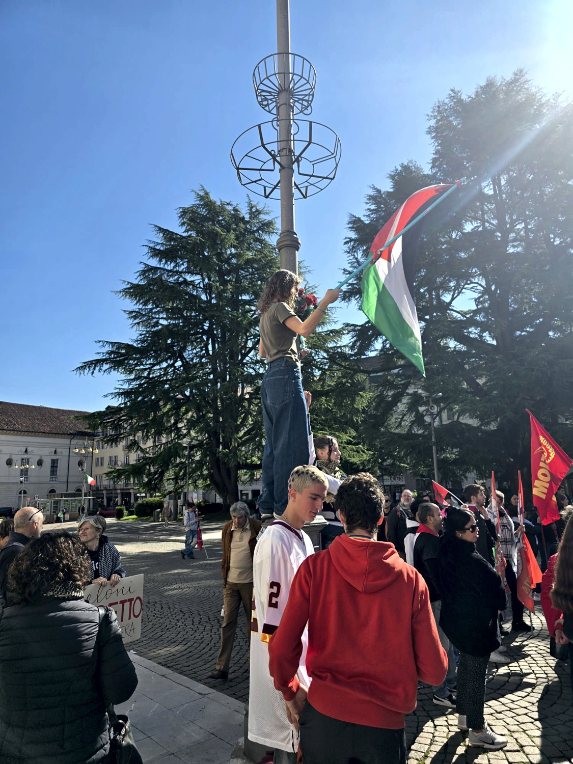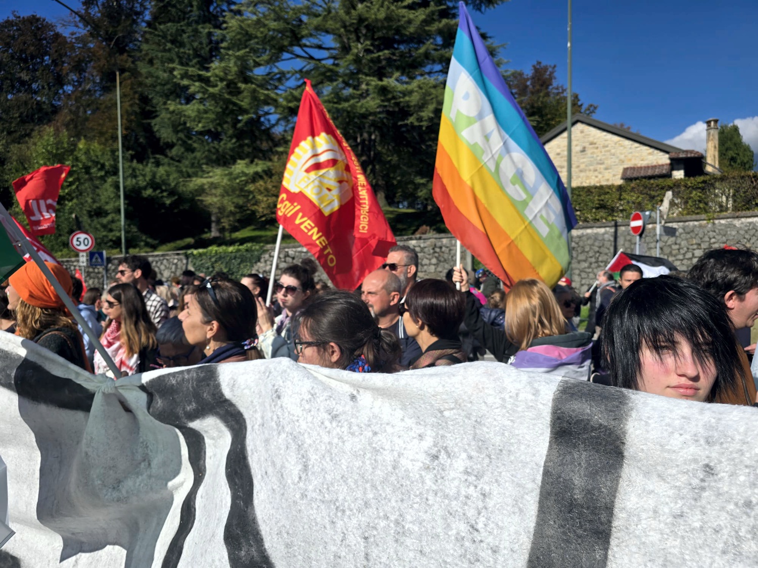A Belluno almeno duemila persone tra studenti, lavoratori e pensionati hanno marciato per chiedere la pace a Gaza. Una marea di persone che ha riempito tutta Piazza dei Martiri. I manifestanti si sono ritrovati stamattina, venerdì 3 ottobre, alla rotonda della Cerva per partecipare allo sciopero generale indetto da Flc– Cgil e S.i. Cobas in segno di protesta contro il blocco della missione umanitaria della Global Sumund Flotilla per Gaza. L'appuntamento era previsto per le 10 ma molti si sono presentati sul posto prestabilito con minuti di anticipo muniti di cartelli di protesta, bandiere palestinesi e fumogeni. Dalla rotonda della Cerva sono partiti cori pro Palestina, canzoni inneggianti la libertà e invettive contro il governo Meloni, contro il ministro Salvini e contro il governo israeliano. Dal punto di ritrovo i manifestanti si sono avviati verso il centro storico attraversando viale Fantuzzi, proseguendo lungo via Girolamo Segato per poi imboccare via Loreto e giungere nel centro cittadino. Una volta giunto in Piazza dei Martiri, il corteo ha percorso metà Liston prima di depositare a terra una bandiera palestinese e una bandiera della pace. I manifestanti si sono chiusi a cerchio impugnando uno striscione che invocava lo stop al genocidio palestinese ed hanno ascoltato le parole di diversi rappresentanti sindacali, politici ed insegnanti. Gli interventi degli interlocutori venivano spesso interrotti da cori e canti che inneggiavano alla libertà per la Palestina. Il tutto è avvenuto in clima sereno e disteso, dove diversi oratori hanno potuto parlare ed esporre le rispettive motivazioni alla base dell'adesione allo sciopero. Rumori, suoni e colori hanno attirato anche tanti curiosi che, seppur inizialmente non avevano partecipato allo sciopero, hanno iniziato a cantare e ascoltare con interesse le motivazioni e i discorsi pro Gaza dei manifestanti.