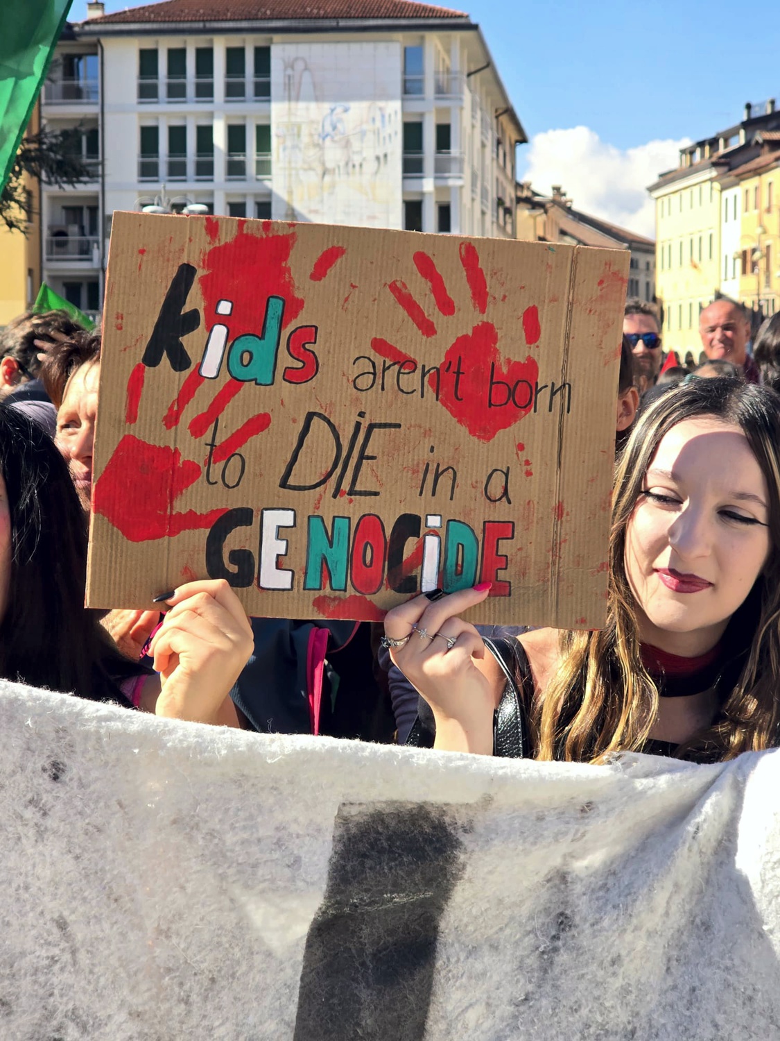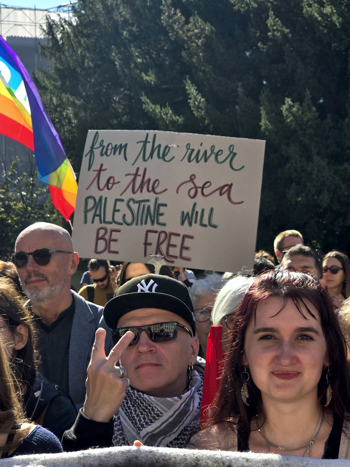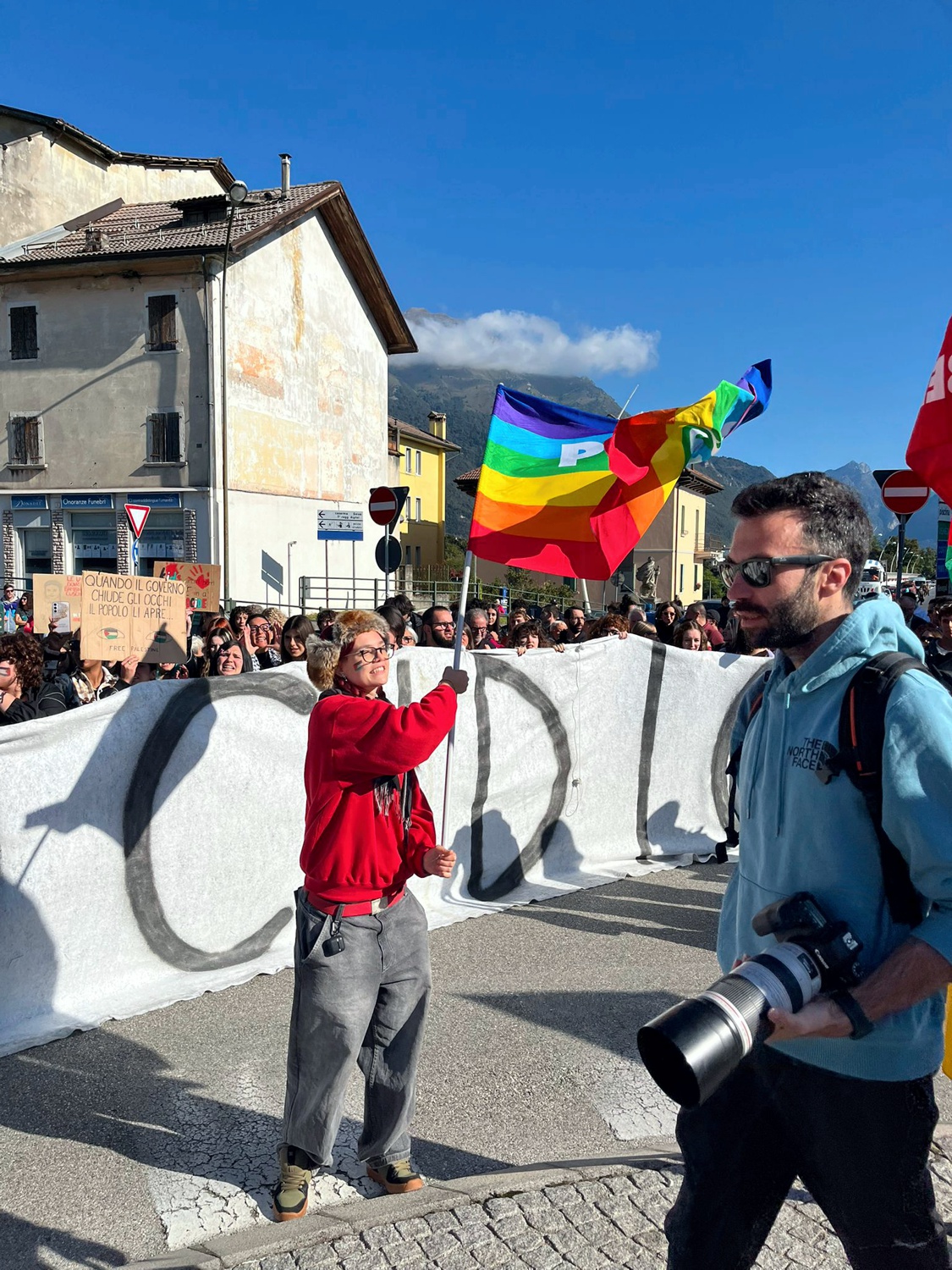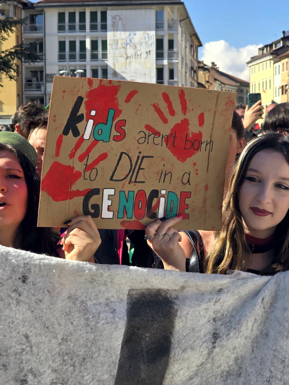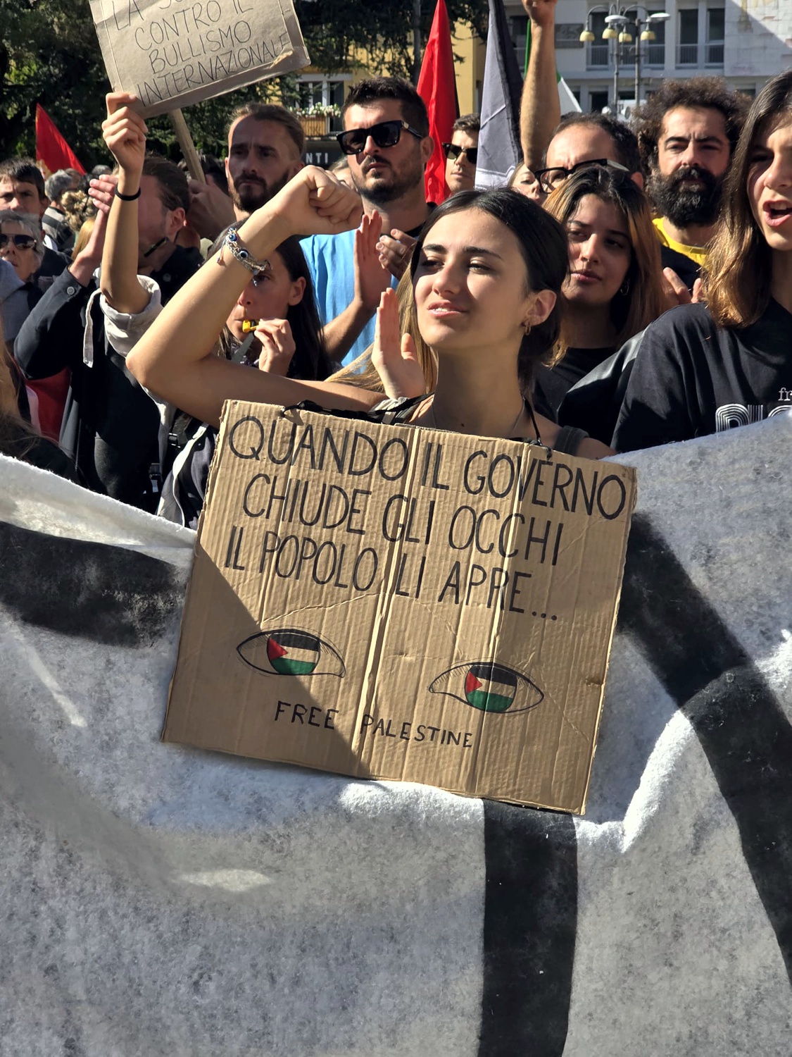 A Belluno almeno duemila persone tra studenti, lavoratori e pensionati hanno marciato per chiedere la pace a Gaza. Una marea di persone che ha riempito tutta Piazza dei Martiri. I manifestanti si sono ritrovati stamattina, venerdì 3 ottobre, alla rotonda della Cerva per partecipare allo sciopero generale indetto da Flc– Cgil e S.i. Cobas in segno di protesta contro il blocco della missione umanitaria della Global Sumund Flotilla per Gaza. L'appuntamento era previsto per le 10 ma molti si sono presentati sul posto prestabilito con minuti di anticipo muniti di cartelli di protesta, bandiere palestinesi e fumogeni. Dalla rotonda della Cerva sono partiti cori pro Palestina, canzoni inneggianti la libertà e invettive contro il governo Meloni, contro il ministro Salvini e contro il governo israeliano. Dal punto di ritrovo i manifestanti si sono avviati verso il centro storico attraversando viale Fantuzzi, proseguendo lungo via Girolamo Segato per poi imboccare via Loreto e giungere nel centro cittadino. Una volta giunto in Piazza dei Martiri, il corteo ha percorso metà Liston prima di depositare a terra una bandiera palestinese e una bandiera della pace. I manifestanti si sono chiusi a cerchio impugnando uno striscione che invocava lo stop al genocidio palestinese ed hanno ascoltato le parole di diversi rappresentanti sindacali, politici ed insegnanti. Gli interventi degli interlocutori venivano spesso interrotti da cori e canti che inneggiavano alla libertà per la Palestina. Il tutto è avvenuto in clima sereno e disteso, dove diversi oratori hanno potuto parlare ed esporre le rispettive motivazioni alla base dell'adesione allo sciopero. Rumori, suoni e colori hanno attirato anche tanti curiosi che, seppur inizialmente non avevano partecipato allo sciopero, hanno iniziato a cantare e ascoltare con interesse le motivazioni e i discorsi pro Gaza dei manifestanti.
